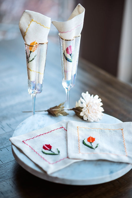 Sold outTulip Embroidered Cocktail Napkins